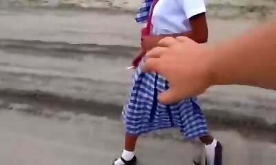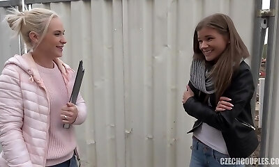 06:15Cheeky CFNM schoolgirls dicksucking outdoors